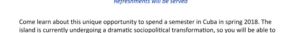 Come Learn about this unique opportunity to spend a semester in Cuba in spring 2018. The island is currently undergoing a dramatic sociopolitical transformation, so you will be able to witness history in the making.